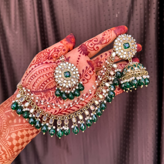 Masaba Mirror Jhumka Earrings with Sahara & Tika Set - Green