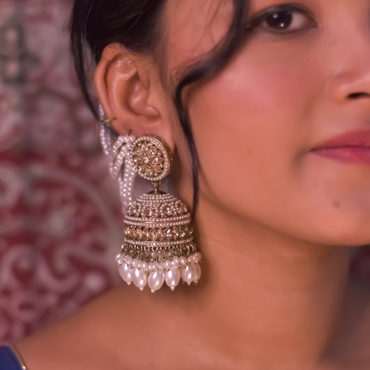 Kashi Kundan Jhumka Earrings with Sahara/Earchains - Golden