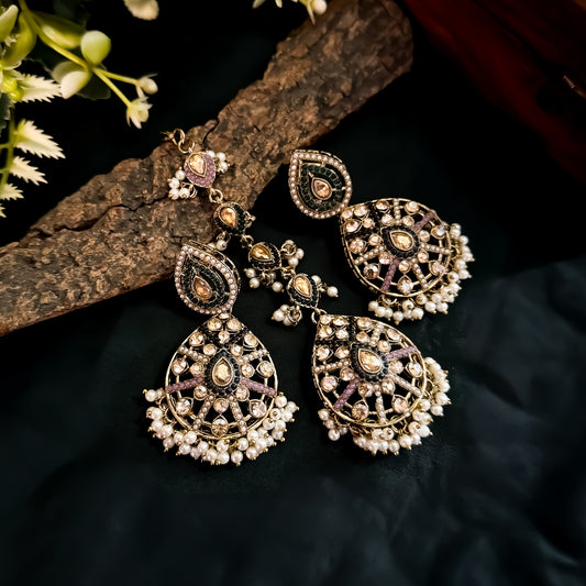 Mehvish Jadau Reverse AD Jhumka Earrings with Earchain - Lavender