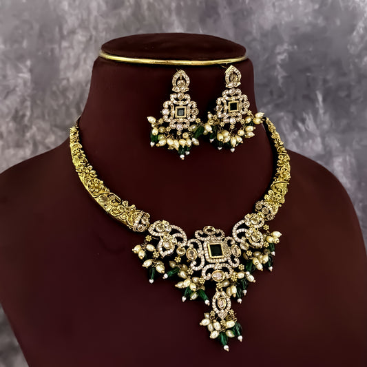 Shrenu Victorian Navratan AD Necklace Set- Multi