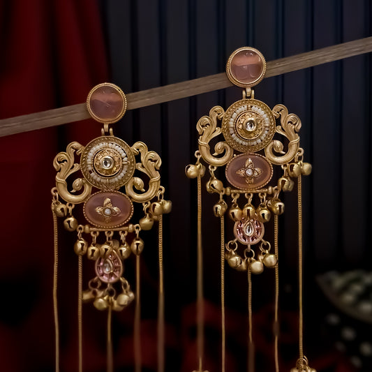 Chaya Premium Kashmiri Matte Polish Ghungroo Earrings - Pastel Pink