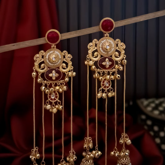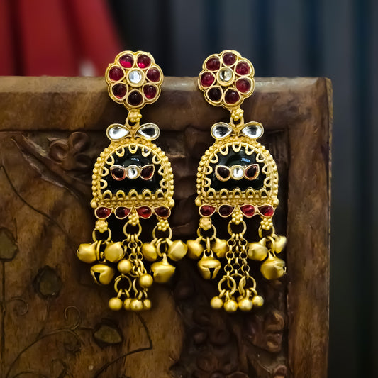 Chaya Premium Kashmiri Matte Polish Ghungroo Earrings - Ruby