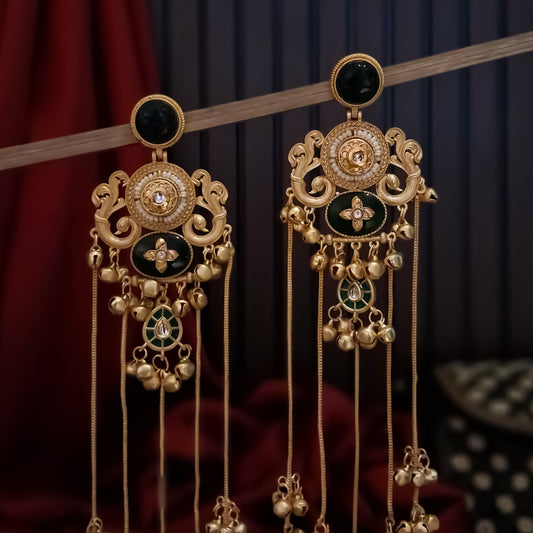 Chaya Premium Kashmiri Matte Polish Ghungroo Earrings - Green