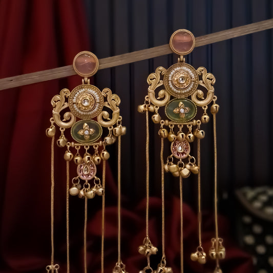 Chaya Premium Kashmiri Matte Polish Ghungroo Earrings - Pastel Pink & Green