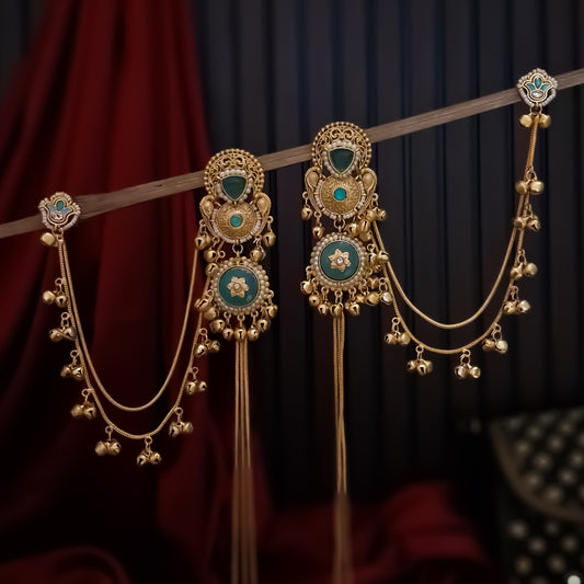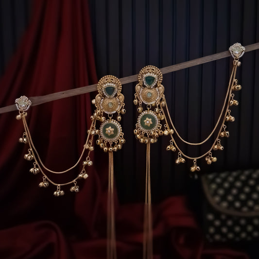 Afsana Premium Kashmiri Brass Sahara/Earchain Earrings- Green