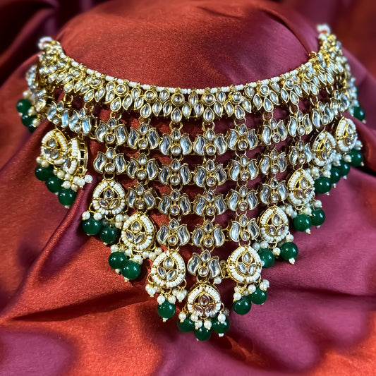 Shipra Premium Victorian AD Style Necklace Set - Green
