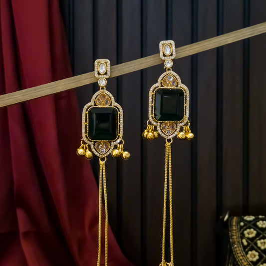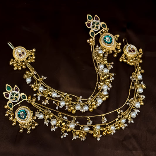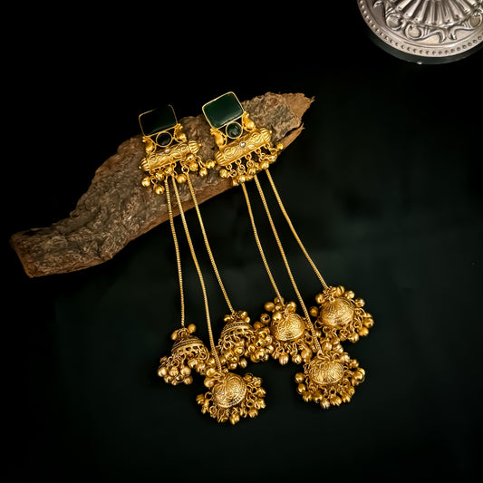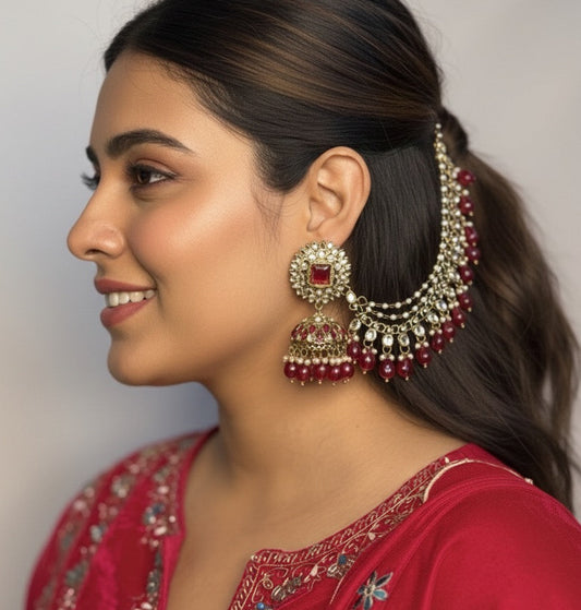 Kashi Kundan Jhumka Earrings with Sahara/Earchains - Golden