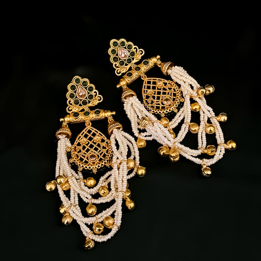 Oshin Kashmiri Dehjoor Ghunghroo Earrings - Green