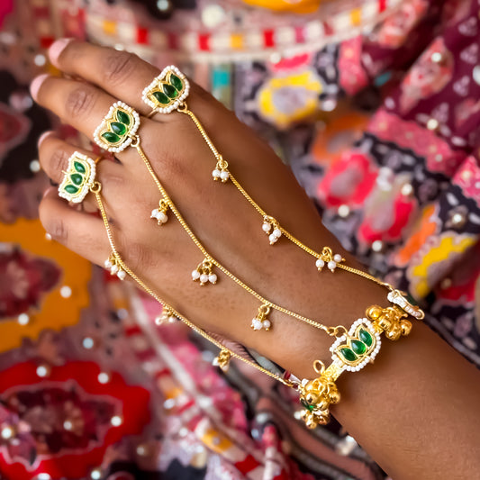 Kamaltika Adjustable Kashmiri Brass Haathphool (Pair) - Green