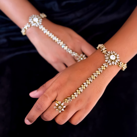 Millie Premium American Diamond Haathphool - Crystal White