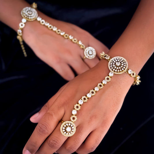 Christine Premium American Diamond Haathphool - Golden