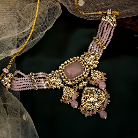 Shriya Kundan Choker Necklace Set - Pastel Pink