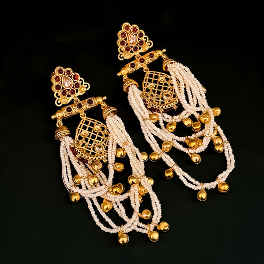 Ketli Aroma Pearl Drop Kashmiri Brass Earrings - Golden