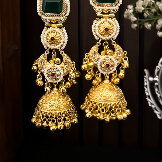 Meghana Premium Kashmiri Brass Ghungroo Jhumka Earrings - Green