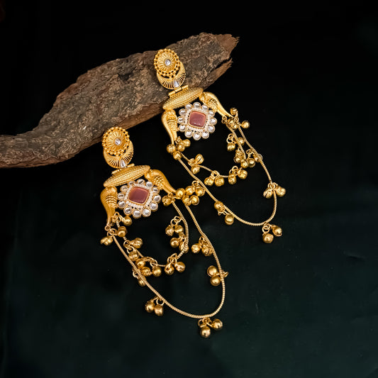Neelkanchi Peacock Premium Kashmiri Brass Jhumka with Earcuff Earrings - Golden