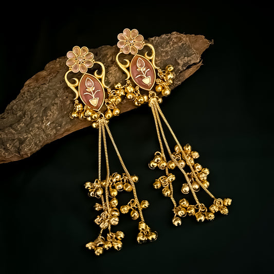 Suhani Kashmiri Brass Dejhoor Ghungroo Earrings - Pastel Pink
