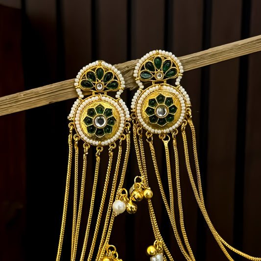 Aarunika Premium Kashmiri Brass Dejhoor Earrings with Sahara/Earchains - Green