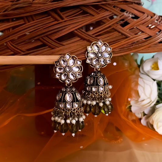 Aashika Pearl Jhumka Earrings- Mehendi Green