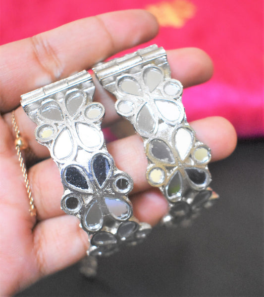 Afghani Mirror Oxidised Boho Bangle Set Pair - (Size 2.4)
