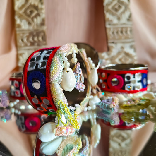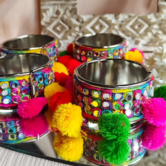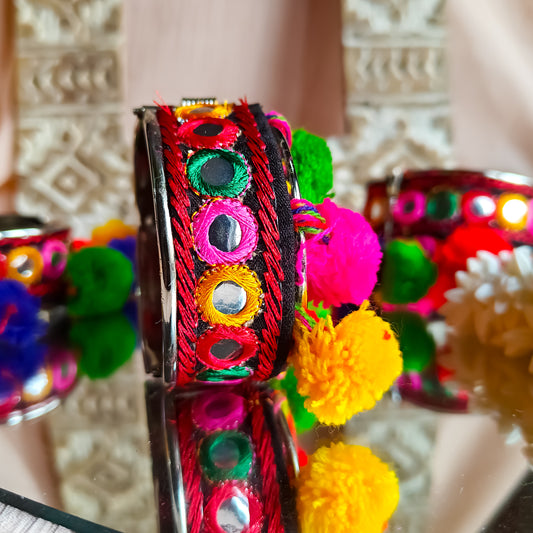 Kumkum Temple Gold Bangles with Ruby & Emerald Stones - Set of 4