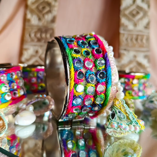 Kunica Kundan Pearl Chandbali Earrings - Multi