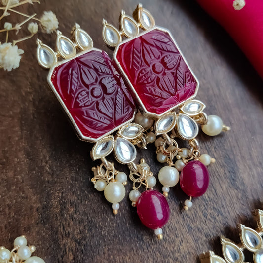 Kunica Kundan Pearl Chandbali Earrings - Maroon
