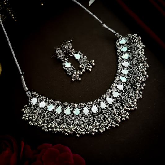 Lata Mirror Oxidised Ghunghroo Oxidised Necklace Set