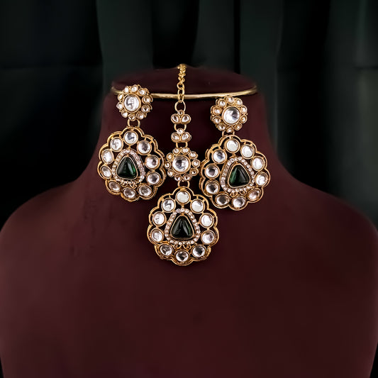 ANUPAMA MIRROR & CARVED STONE NECKLACE SET - GREEN