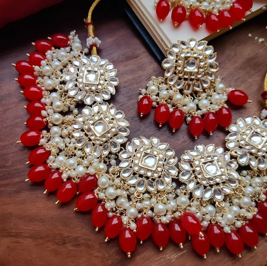 Arshi Kundan Pearl Necklace Set - Red
