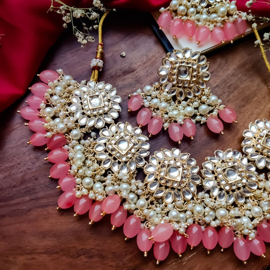 Arshi Kundan Pearl Necklace Set - Blush Pink