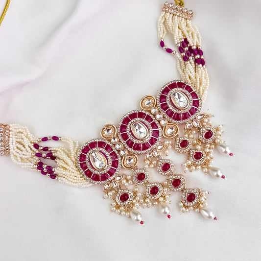 Vartika Kundan Pearl Choker Necklace Set - Pink