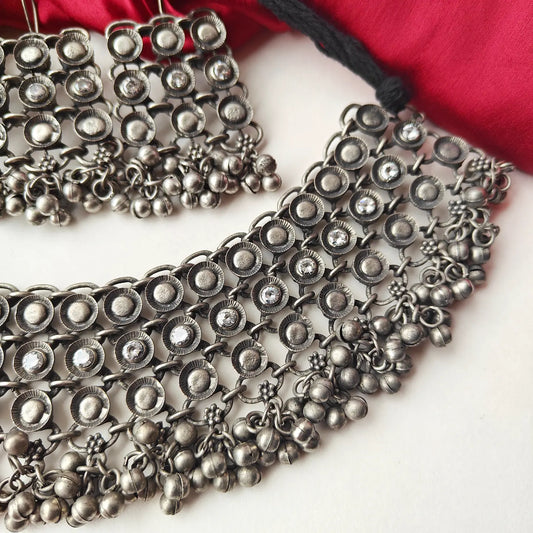 Veera Vintage Silver Afghani Necklace Set with Earrings