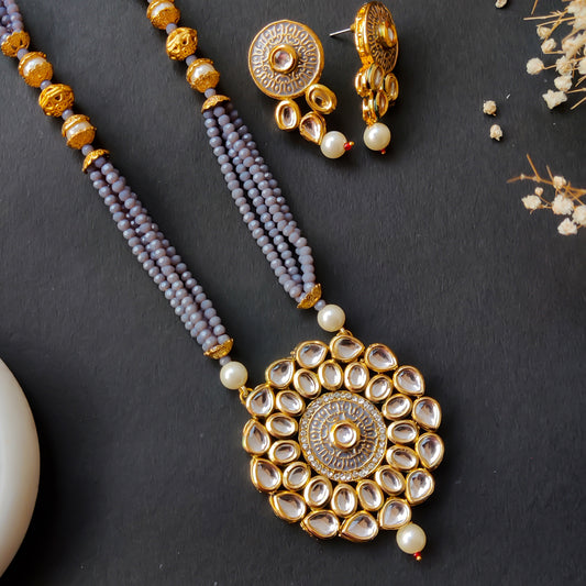 Vipasa Black Metal Polki Look Alike Necklace Set with Earrings