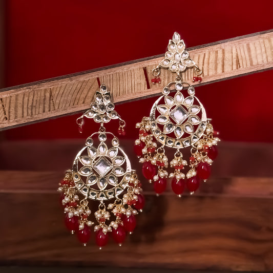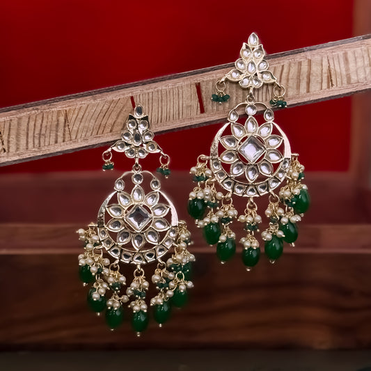Zahira Jadau Chandbali Earrings- Golden/Ivory