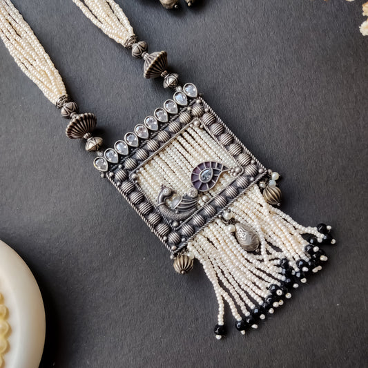 Yasmin Peacock Reverse AD Necklace Set - Green