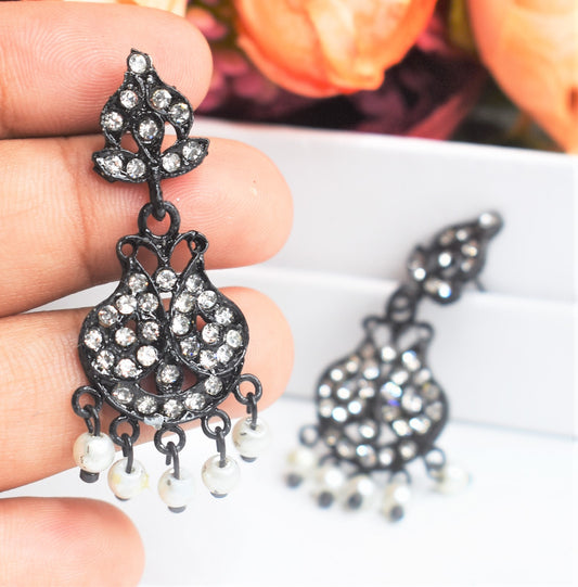 Black Metal Kundan Chandbali Earrings