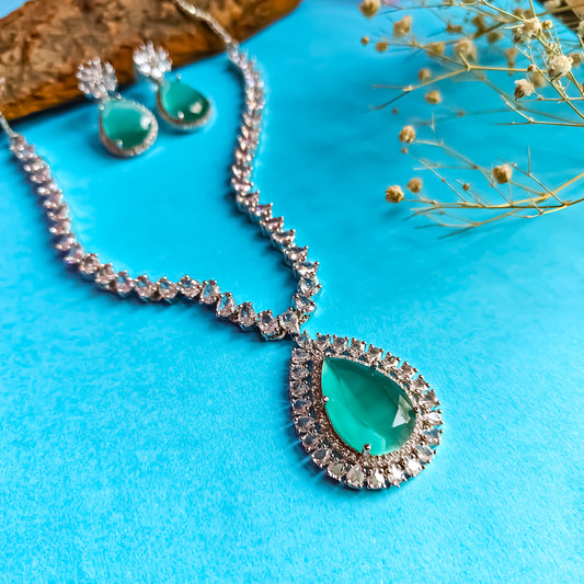 Kristine Premium American Diamond Necklace Set- Crystal White