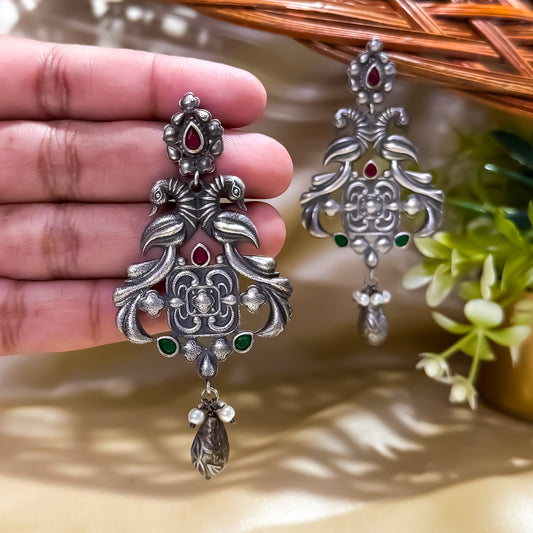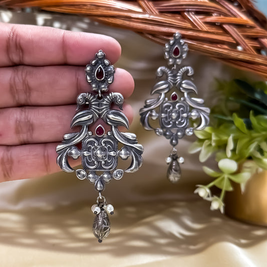 Ruhani Handcrafted SLA Brass Earrings - Ruby
