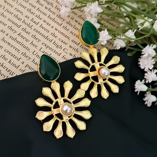 Ruhani Handcrafted SLA Brass Earrings - Ruby & Green