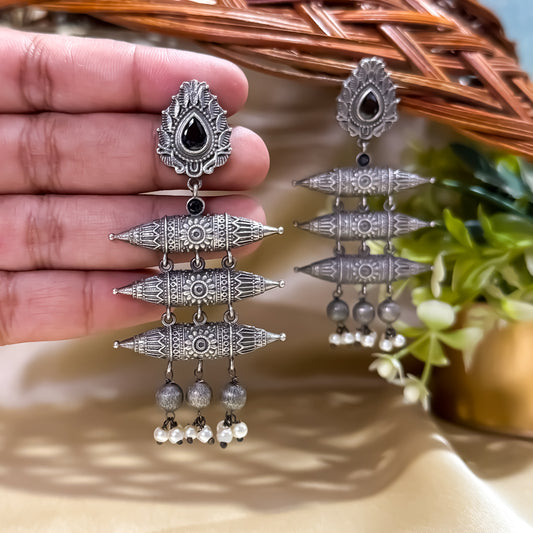 Lavnya Handcrafted SLA Brass Earrings - Black