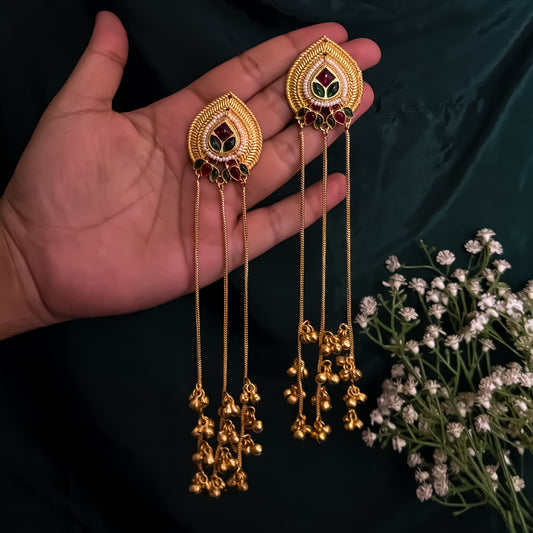 Unnati Premium Kashmiri Brass Dejhoor Ghungroo Earrings - Golden & Pink