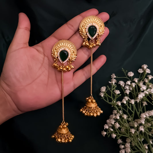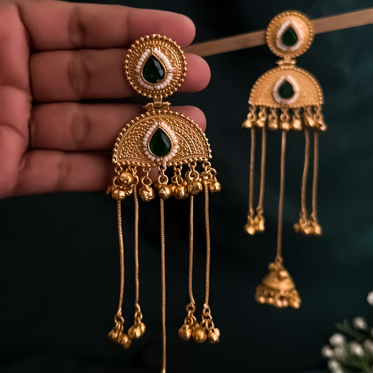 Brinda Premium Kashmiri Brass Dejhoor Ghungroo Jhumka Earrings - Green