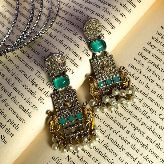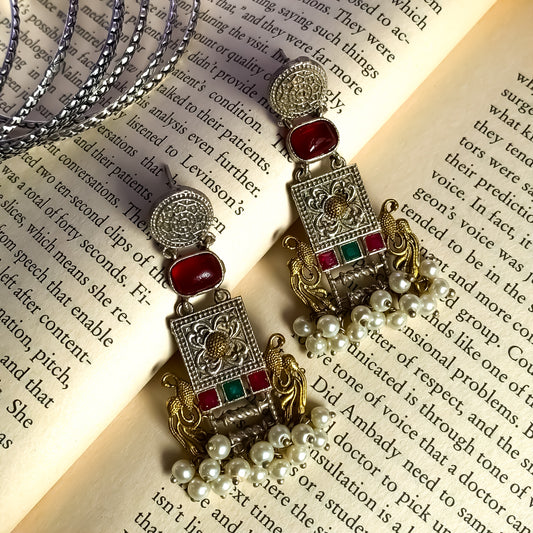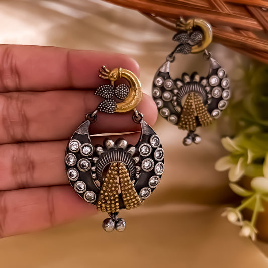 Peacock Zircon Dual Tone SLA Brass Earrings