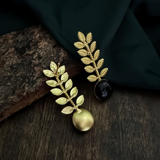 Lina Leaf Drop Handcrafted Brass Earrings - Black