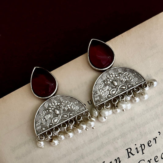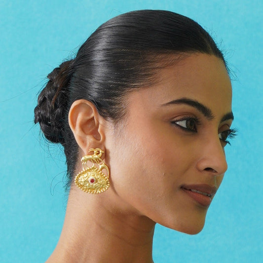 Saanvi Handcrafted Brass Earrings - Red