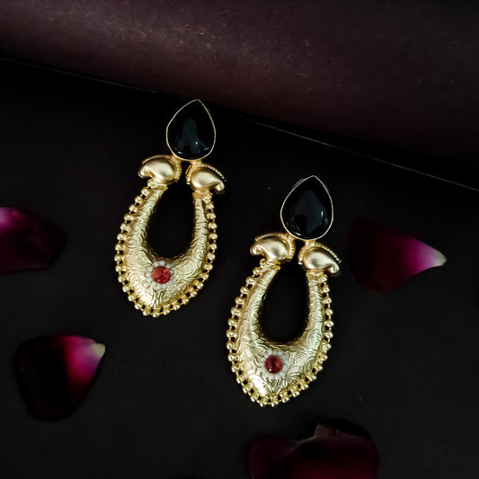 Saanvi Handcrafted Brass Earrings - Black