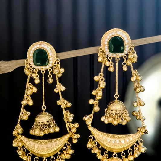 Tarini Premium Kashmiri Brass Dejhoor Ghungroo Jhumka Earrings - Golden & Green
