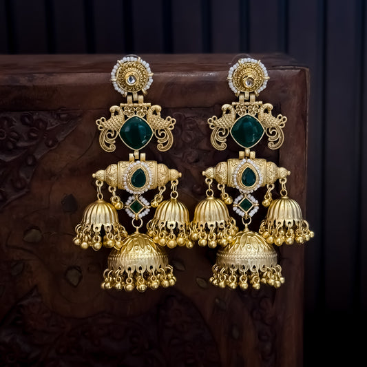Kaira Premium Kashmiri Matte Polish Ghungroo Jhumka Earrings - Green