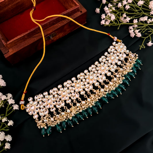 Antara Dabi Kundan Neckalce set - Peacock Blue