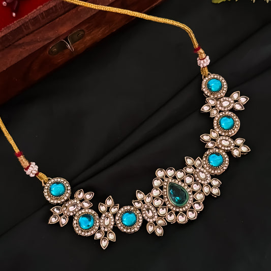 Israt Kundan Necklace Set - Sky Blue